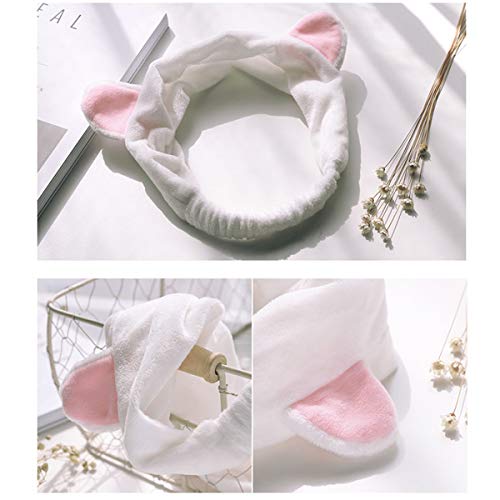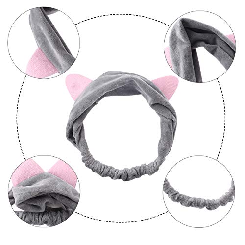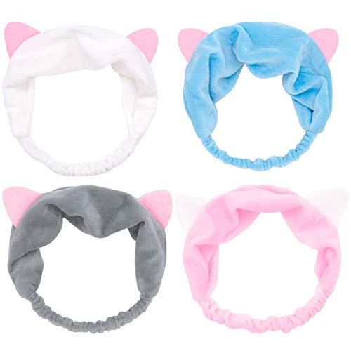Dokpav 4 pcs Diademas con Orejas de Gato para Mujer, Pelo Bandas Elásticas para Maquillaje Lavado Facial Ducha, azul rosa blanco gris