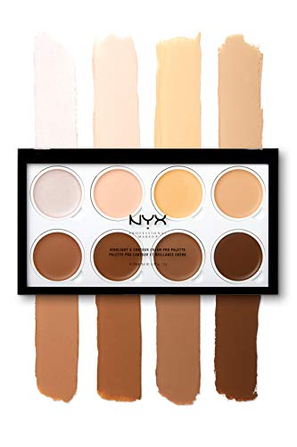 NYX Professional Makeup Paleta de contouring Highlight & Contour Cream Pro Palette, Kit de contouring de 8 sombras de textura cremosa