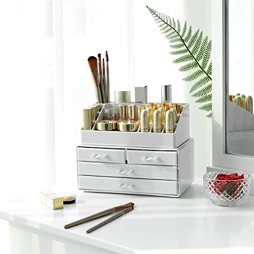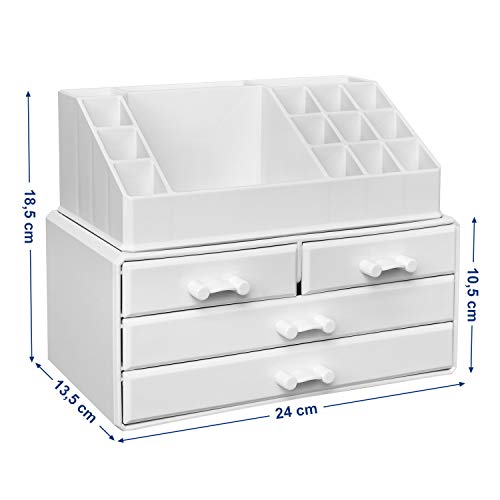 SONGMICS Organizador de Maquillaje, Material acrílico, con 4 cajones para Almacenamiento en el baño o el Dormitorio, para pintalabios, Joyas, Esmalte de uñas, Hilo de Coser, en Color Blanco