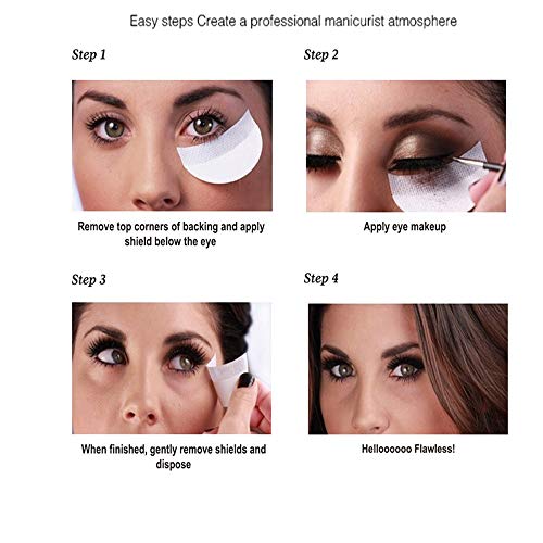 - Fácil de usar: mantenga la piel que desea pegar limpia y seca, simplemente presione los protectores de sombras de ojos autoadhesivos debajo del área de los ojos, estos protectores de sombras de ojos desechables son agradables para el injerto de pestañas falsas y aislamiento del delineador de ojos