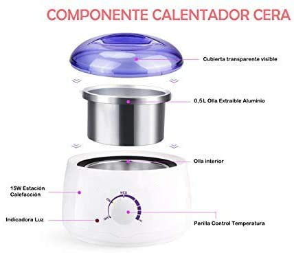 - Diseño ergonico y compacto y Derrite todos los tipos de ceras depilatorias enlatados, cera dura, bloque y frijoles
