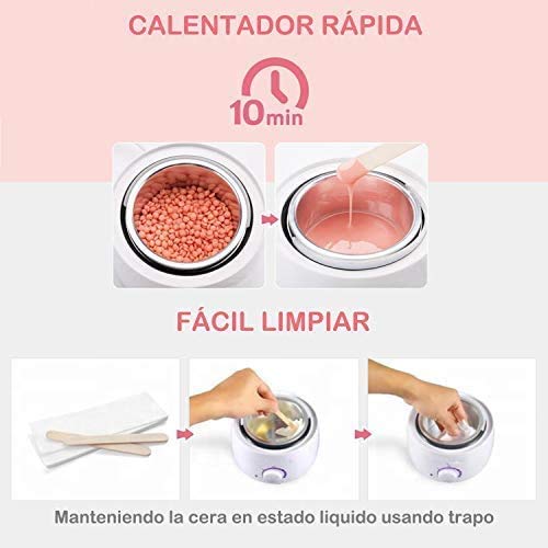 - 500ml capacidad de olla de acero inoxidable,calentador Rapida en 10 min y listo para depilar.