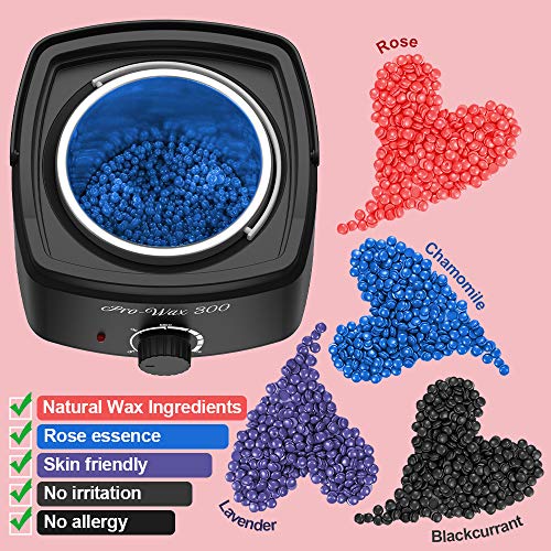 - 【4 types de perles cires】: Notre chauffe cire électrique applique à tous les types de cires, y compris les perles de cire, cire dure, cire molle, canettes de cire de 16 onces, cire en vrac, cire de bikini en briques, cire micro-ondable et cire capillaire. Cet appareil chauffe cire est livré avec 4 différents types de perles cires,cent pour cent sûr pour votre peau sensible et peut éliminer cent pour cent des poils indésirables