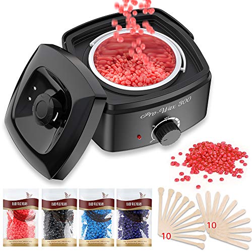 - Kit de calentador de cera: Cuenta con frijoles de cera dura de 4 diferentes sabores, 10palitos aplicadores de cera, que son fáciles de usar. elimina el 98% del vello corporal no deseado desde sus cejas, brazos, axilas, área del bikini y piernas, dejando la piel limpia y suave de pies a cabeza