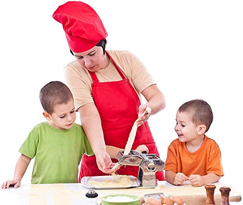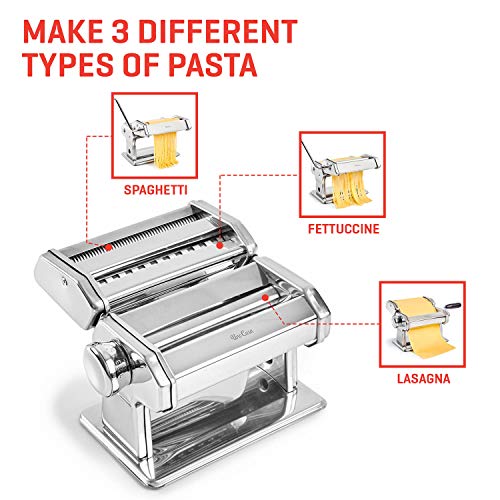 - ? MATERIALES RESISTENTES Y DURADEROS - Fabricada con acero inoxidable y aluminio, la máquina para hacer pasta fresca de Uno Casa es uno de esos utensilios de cocina fiables que duran años. La sencilla estructura metálica es fácil de ensamblar y de limpiar, mientras que los afilados rodillos de aluminio de esta herramienta son ideales para cortar pasta con la forma perfecta, sin riesgo de que se desconchen o dejen residuos metálicos.
