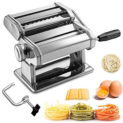 Sailnovo Máquina Pasta Fresca, Máquina de Cortador de Pasta de Acero Inoxidable, Máquina de Rodillos Para Casa Cocina Fabrica de Fideos Frescos de Masa Tagliatelle de Lasaña de Espaguetis