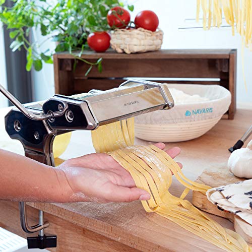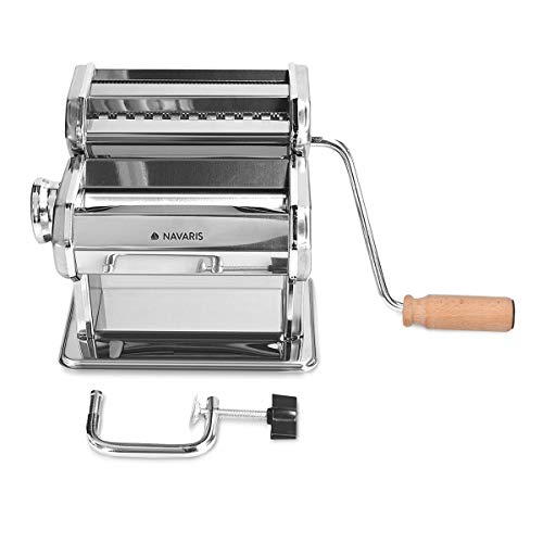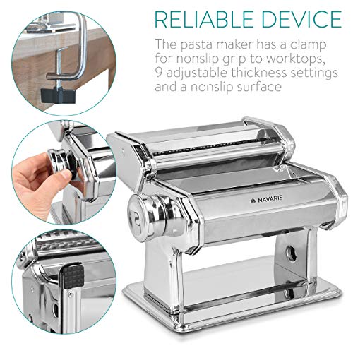 Navaris Máquina para Hacer Pasta Fresca - Accesorio de Cocina para Hacer lasaña tagliatelle espaguetti - Aparato para Estirar Masa de Pasta casera