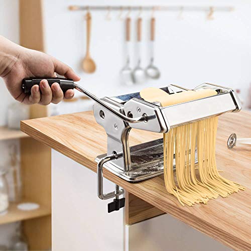 - [Materiales de Alta Calidad]: La máquina de pasta está compuesta por un cuerpo de acero inoxidable resistente y rodillos y cuchillos de acero anodizado de alto carbono. Es resistente y duradera y es muy adecuada para hacer una variedad de pastas caseras frescas.