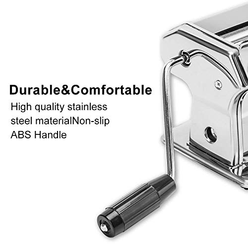 - ?【Estructura Resistente】La máquina pasta TANBURO está hecha de acero inoxidable de alta calidad y tiene una estructura fuerte y duradera. La base de goma antideslizante y el diseño de la manivela ABS lo hacen más seguro de usar