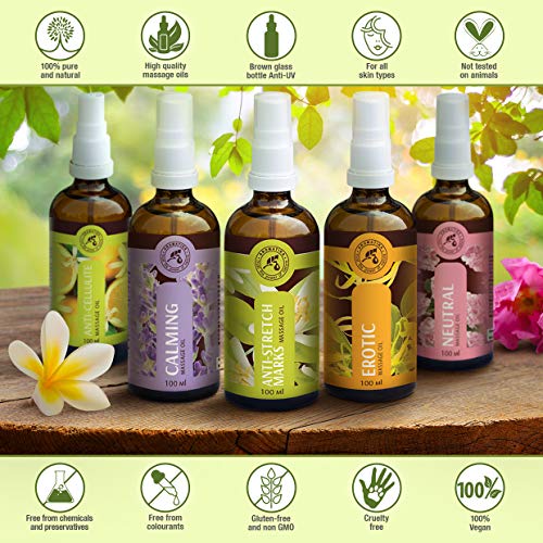Aceite de Masaje Anti estrías 100ml - Aceite de Jojoba - Aceite de Almendra y Aceite de Mandarina - Cosméticos Naturales - para Estrías - Marcas del Embarazo con Maravilloso Aroma