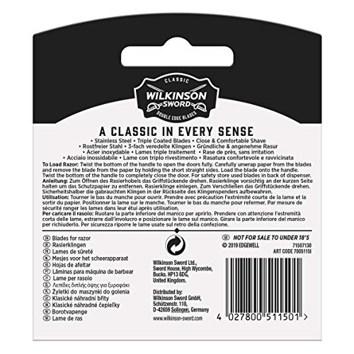 Wilkinson Sword Classic PREMIUM - Recambios de 10 Hojas de Cuchillas de Afeitar para Hombres , Afeitado Clásico Masculino , Doble Filo