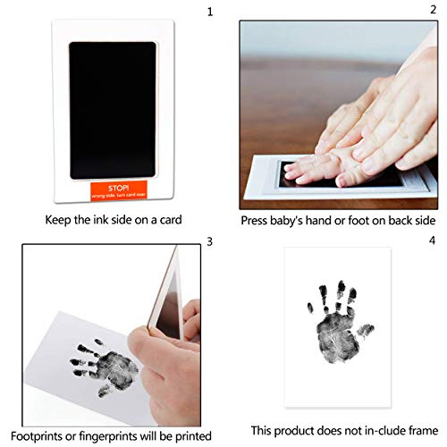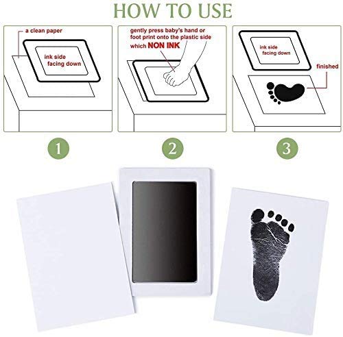 - Fácil de usar: simplemente mantenga el lado de la tinta en la tarjeta de impresión y presione la mano o el pie del bebé en la parte posterior. Solo una presión que puede capturar y revelar los detalles más grandes de la mano y los pies de su bebé fácilmente.