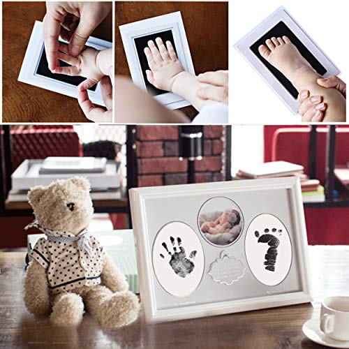 - 【Seguridad y salud】: kit de huella y huella del bebé que garantiza que la piel del bebé nunca toque la tinta, 100% seguro para bebés. con dos almohadillas de tinta incluidas para crear impresiones perfectas de manos y pies para bebés.