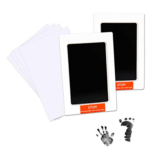 - Paquete incluido: 2 almohadillas de tinta de toque limpio y 4 tarjetas de impresión para más ocasiones. La almohadilla de tinta se adapta a las manos / pies hasta 9.5 cm (L) * 5.7 cm (W), ajuste perfecto para la mayoría de las manos y pies del bebé de 0-6 meses de edad.
