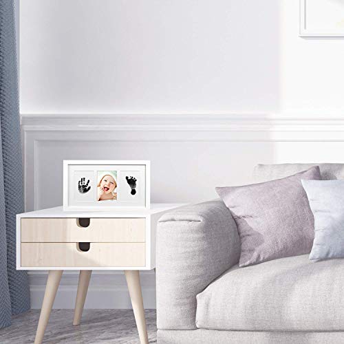 Meilo Set de Marco de Fotos y Huellas de Bebé en Tinta – Marcos de fotos para bebé– No tóxico - Marco de madera y cristal acrílico -Sets de modelado e impresión (negro)