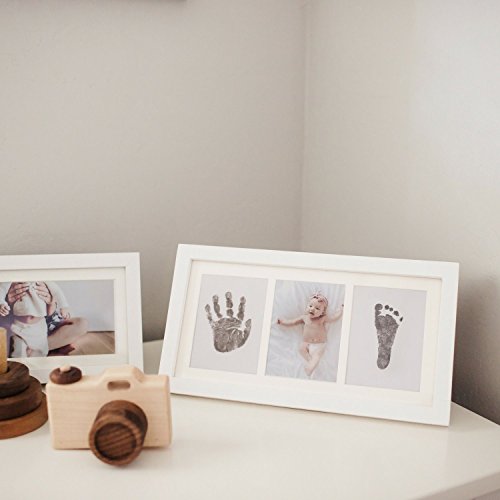 Bubzi Co Set de Marco de Fotos y Huellas de Bebé en Tinta – Recuerdo memorable – No tóxico – Ideal regalos para bebes - Marco de madera y cristal acrílico – Ideal decoración o regalo de baby shower
