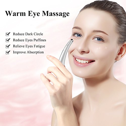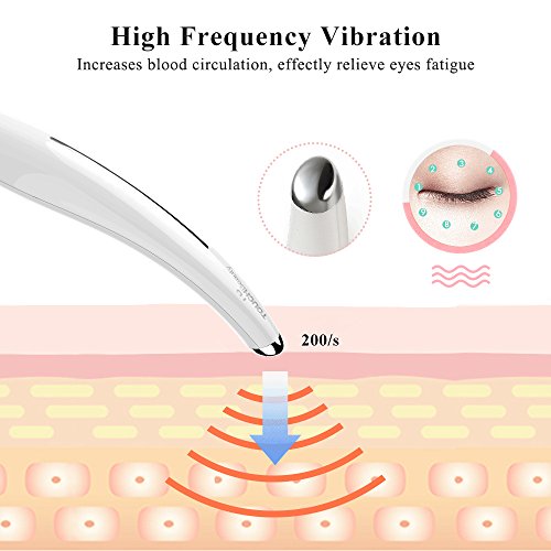 - SONIC VIBRACIÓN MASAJEADOR DE OJOS --- Rejuvenezca su piel debajo de los ojos con nuestra varita sonora del masajeador del ojo. El motor incorporado de vibración suave con una velocidad de 7000 rpm que proporciona energía cinética de alta velocidad. Ayuda a relajar los ojos, promover el metabolismo, facilitar el círculo oscuro y patas de gallo. La vibración sónica refrescará su piel a un aspecto más brillante.