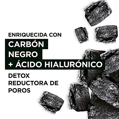 - Contiene carbón negro purificante, conocido por sus propiedades absorbentes que atrapan las impurezas