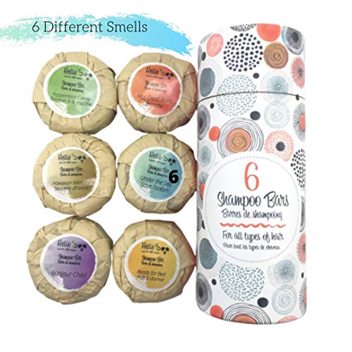 - ✅ JUEGO DE 6 PAQUETES - PARA TODAS SUS NECESIDADES. Este juego de barra de jabón con champú orgánico viene con 6 barras de champú hechas a mano, de alta calidad y totalmente naturales que brindan a su cabello, cuero cabelludo e incluso a la piel una limpieza suave pero efectiva a la vez que promueven un crecimiento del cabello más suave y sedoso. Viene en 6 aromas refrescantes que incluyen lavanda, canela, menta, coco, algas y manzanilla.