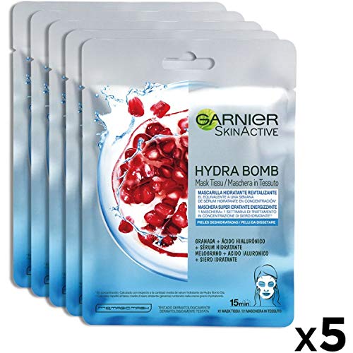Garnier Skin Active Mascarilla de Tejido HydraBomb, Hidratante y Revitalizante, para Pieles Deshidratadas - 5 unidades