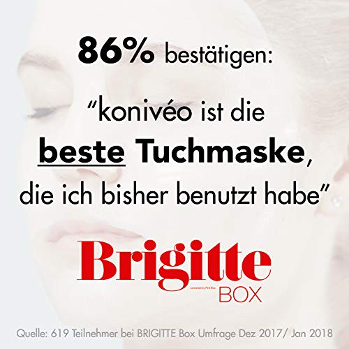 - GALARDONADA por el reconocido Instituto alemán Dermatest con el sello „Muy bueno“. A diferencia de otras marcas, las mascarillas faciales KONIVÉO Premium. NO contienen Parabenes, Alcohol ni aceites minerales