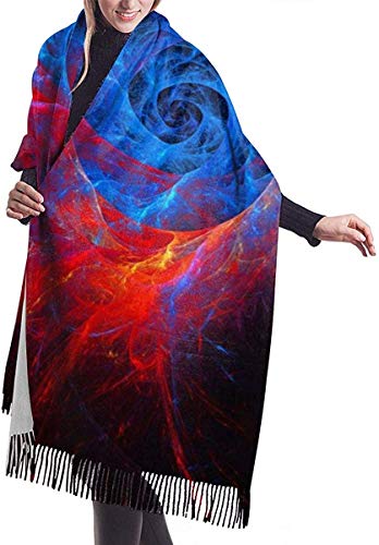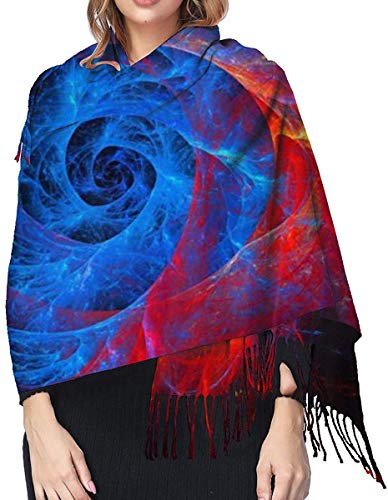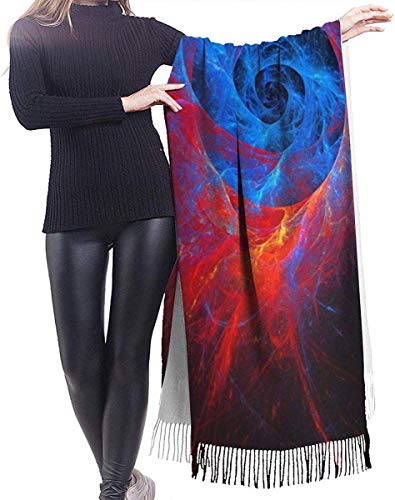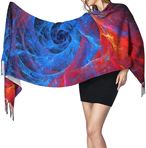 JJsister Bufandas de Mujer,Bufanda Chales para Mujer, Universe Vortex Red Blue Oversized Scarf Wrap Shawl Tassels Cozy Checked Pashmina
