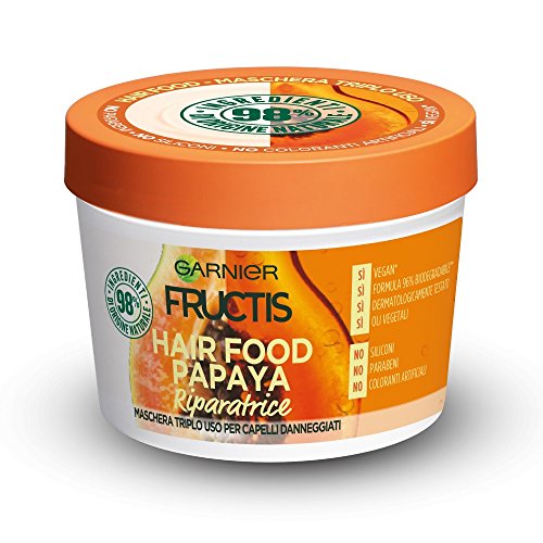 Garnier Fructis Hair Food Mascarilla Capilar 3 en 1 Papaya Reparadora para Pelo Dañado, 390 ml