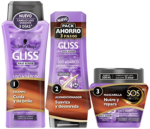 Gliss - Champú 250ml + Acondicionador 200ml + Mascarilla 300ml - Liso Asiático - Schwarzkopf