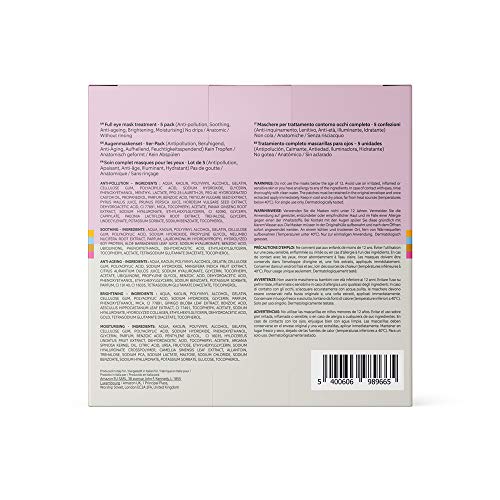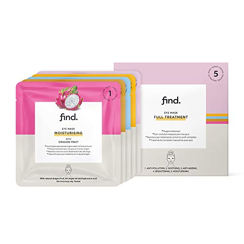 FIND - Tratamiento completo de mascarillas hidrogel, sin goteo, para el contorno de ojos, pack de 5 unidades (anticontaminación, calmante, antienvejecimiento, iluminadora, hidratante)