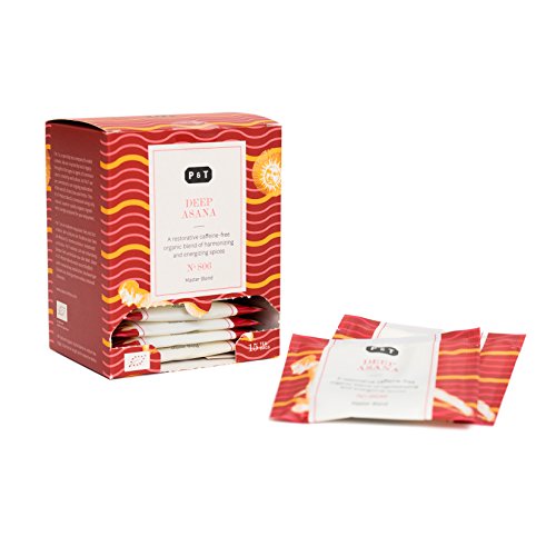 P & T Deep Asana, Master Blend de Especias Orgánicas, Infusión de Hierbas Ayurvédicas Estilo Chai, Sin Cafeína, 15 Bolsitas de Té de Algodón (45g / 1,6oz)