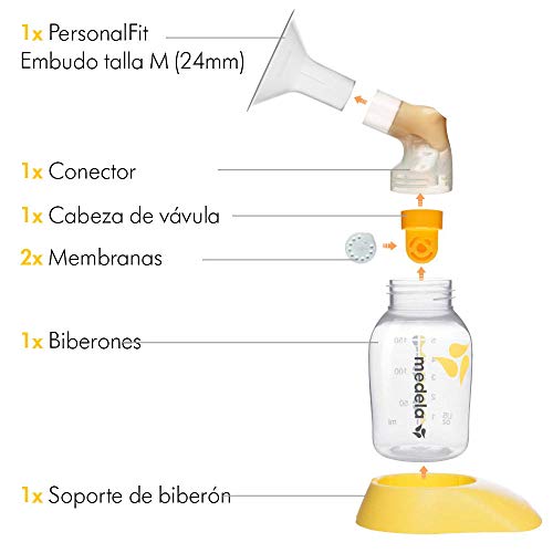 - Medela tiene cinco tamaños de embudo diferentes disponibles para usar con tu extractor de leche ofreciéndote la máxima comodidad (tamaño M, 24 mm, incluido)