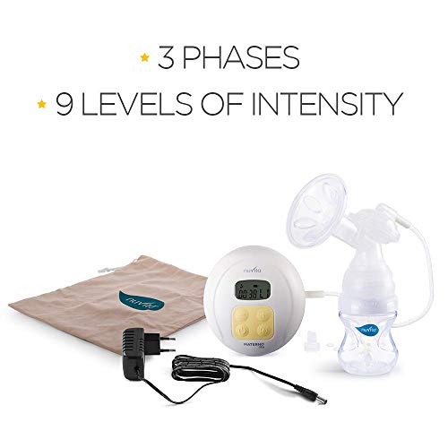 Sacaleches Eléctrico Nuvita Materno Life 1286M - Extractor de Leche Tecnología 2 Fases + 1 - Masaje Automático - 5 Niveles Intensidad - Incluye 1 Botella Mimic 150ml - Libre de BPA - Diseño Italiano