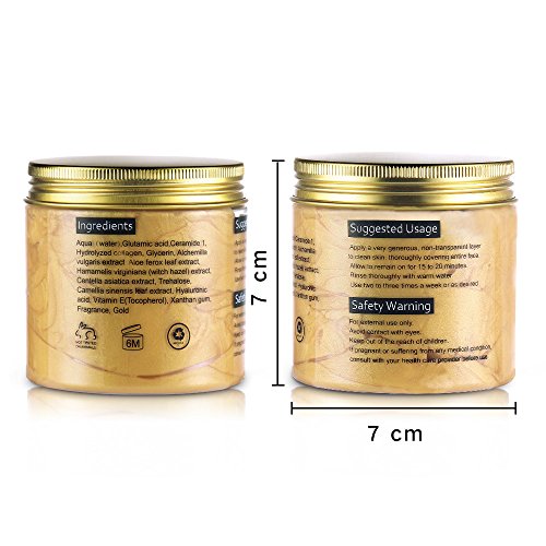 - Nuestra máscara de oro de 24 K está especialmente formulada como una solución 4 en 1: hidratación, iluminación, reparación intensiva y firmeza.Hace que la piel esté sedosa, suave, firme, radiante, revitalizada y juvenil, ayuda a reducir los efectos del envejecimiento.