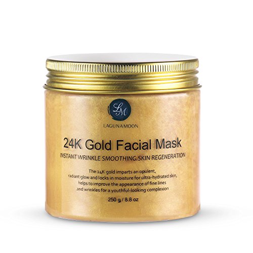 - La máscara facial Lagunamoon de oro de 24 quilates es una excelente fórmula antienvejecimiento y antiarrugas basada en potentes ingredientes que ayudan a reducir los signos del envejecimiento y el brillo y reafirman la piel.
