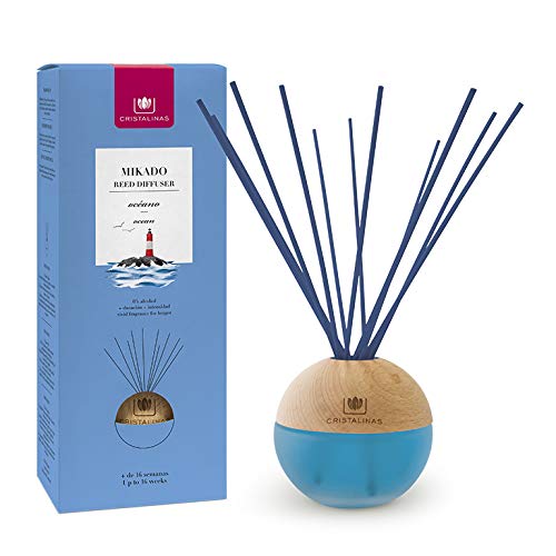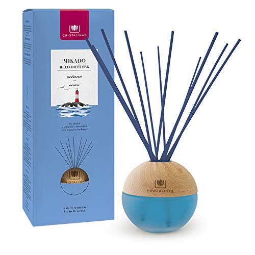 CRISTALINAS Ambientador sin Alcohol Mikado. Esfera Premium. Duración +16 semanas. 180 ml. Aroma Oceano