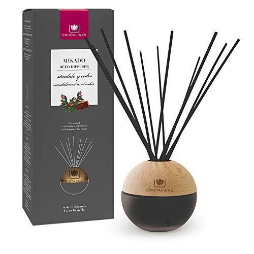CRISTALINAS Ambientador sin Alcohol Mikado. Esfera Premium. Duración +16 semanas. 180 ml. Aroma SÁNDALO y Cedro