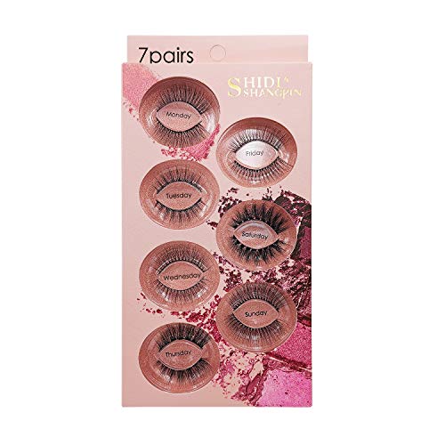 - ❤ 7 estilos surtidos: Le ofrecemos 7 pares de pestañas postizas diferentes (de lunes a domingo) para satisfacer sus necesidades diarias. Las pestañas falsas se pueden usar para crear una variedad de efectos de maquillaje para la ocasión, como bodas, fiestas de Halloween, fiestas de maquillaje o citas y compras para ayudarlo a crear un look glamoroso y natural.