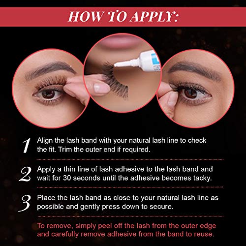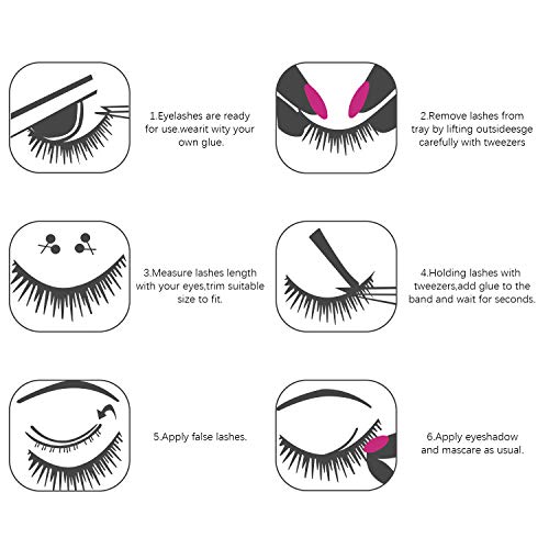 - Hecho a Mano & Reutilizable: Las pestañas postizas están hechas a mano para garantizar la calidad y estética. El uso correcto solo toma unos segundos o menos, se pueden usar varias veces y 5 pares pueden satisfacer sus requisitos. El kit pestañas postizas se pueden recortar para adaptarse a los contornos de sus ojos para que sean más naturales.