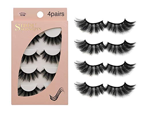 Pestañas Postizas 4 Pares - Profesional reutilizable Pestañas de la cara Ajuste para todos los ojos, Hecho a mano natural grueso Pestañas 3D Faux Mink G106