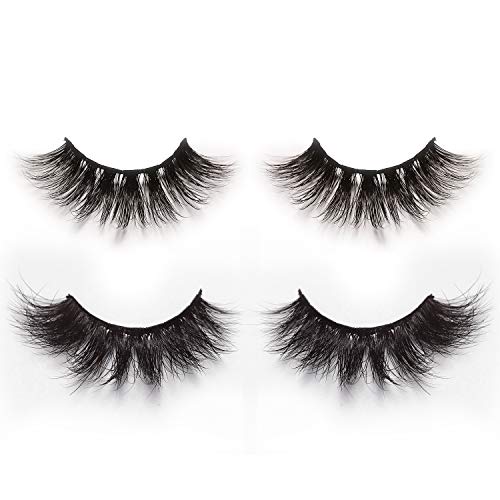 Pestañas Postizas Faux Mink 3D y 4D Paquete de 2 Pares, Seductor Largo & Grueso Hecho a mano Pestañas Postizas al Estilo Dramático & Natural