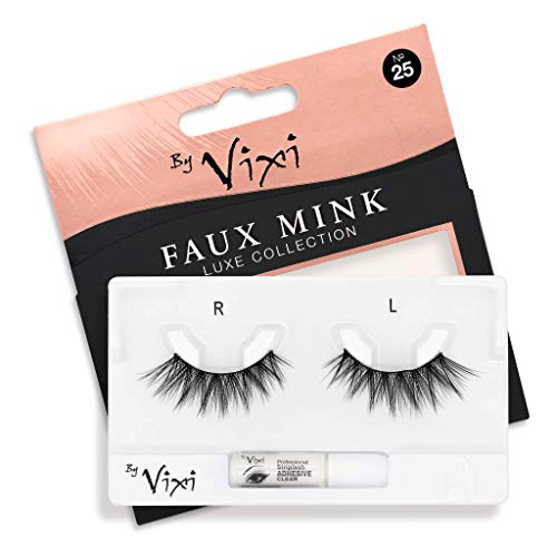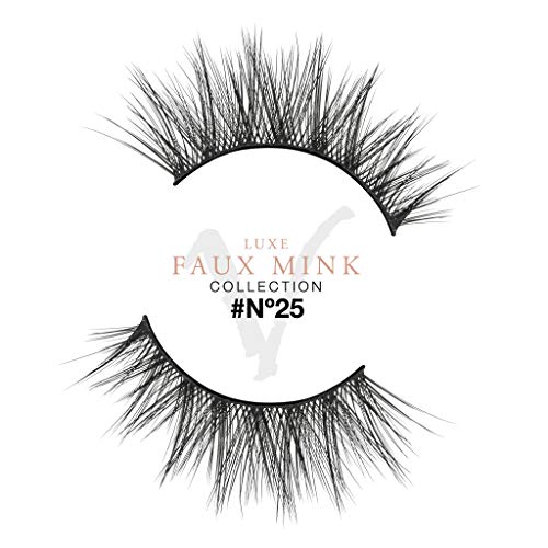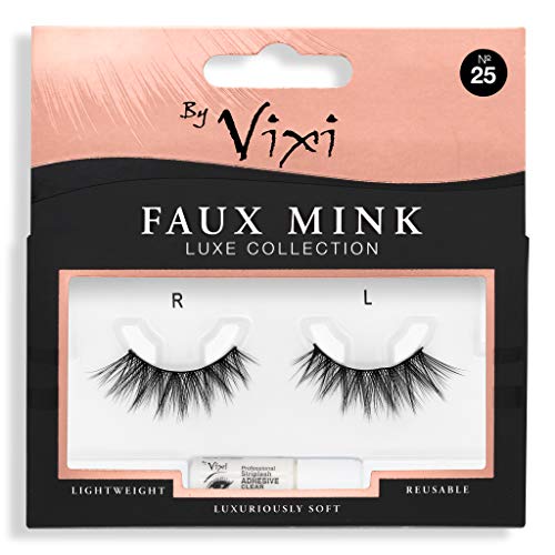 Tira de pestañas postizas By Vixi ¾ (Reutilizables con 1g de PEGAMENTO PARA PESTAÑAS) Banda negro ultra cómoda – Luxe Faux Mink No. 25