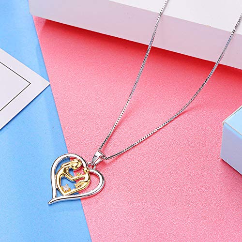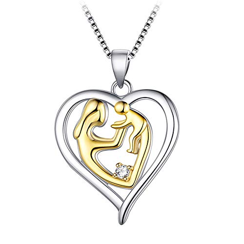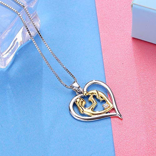 JinYiny Niños y Madre Collar Creativo en Forma de corazón Colgante de Plata esterlina Regalo del día de la Madre