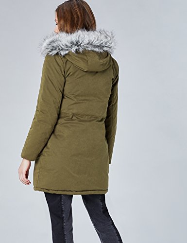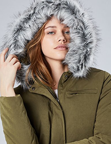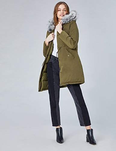 Marca Amazon - find. Parka Reversible con Capucha Mujer, Verde (Khaki), 36, Label: XS