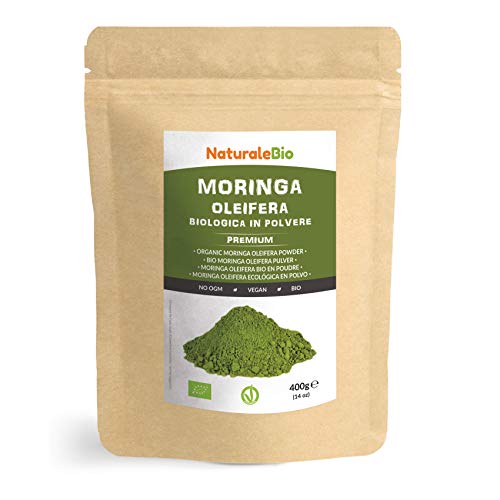Moringa Oleifera Ecológica en Polvo [Calidad Premium] de 400g. Moringa Powder Organica, 100% Bio, Natural y Pura. Hojas Recogidas de la Planta de Moringa Oleífera. NaturaleBio