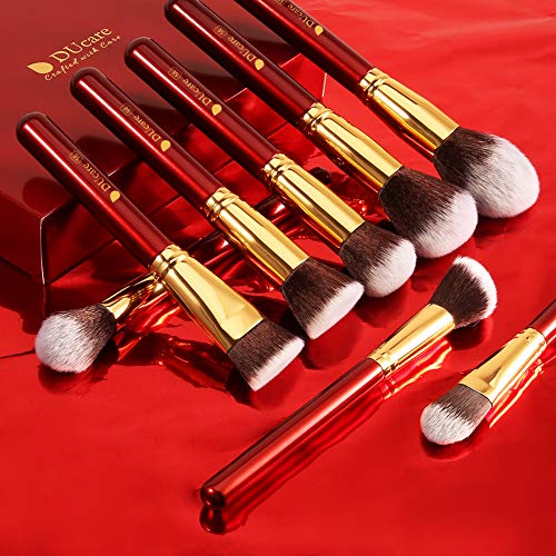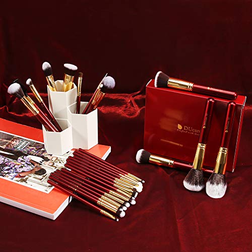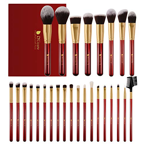 DUcare Brochas de Maquillaje Profesional Rojo 27 pcs Maquillaje Profesional Pinceles Premium Synthetic Maquillaje de Ojos, Rubor, Contorno, Corrector, Pinceles Cosméticos