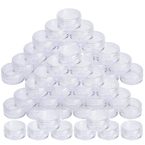 50 pcs 5 ml Envases Cosmetica Vacío Pequeño Botes Cosméticos Plástico Transparente Viaje Muestra con Tapa para Bálsamo Labial Crema Loción Polvos Sombras de Ojos Arenas y Cuentas