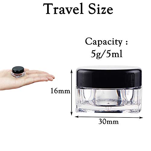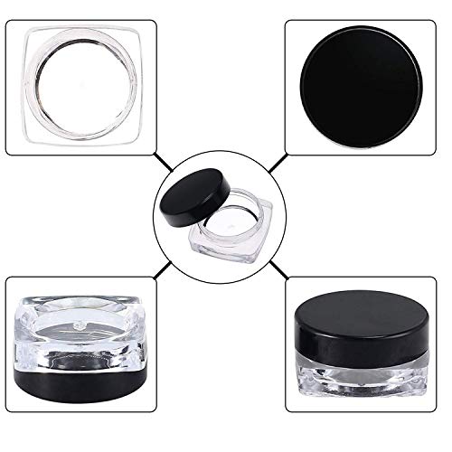 - 【Amplio uso】Nuestros tarros rellenables son ideales para bálsamo labial, manicura, crema, purpurina, maquillaje, pomada, pequeñas joyas, cuentas, hierbas, etc. Cuerpo transparente con tapa negra, fácil de comprobar el contenido. El diseño de tapa de rosca de los tarros de crema proporciona un buen sellado y evita fugas. También hace que sean fáciles de abrir y cerrar.