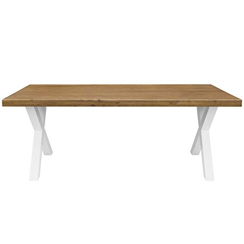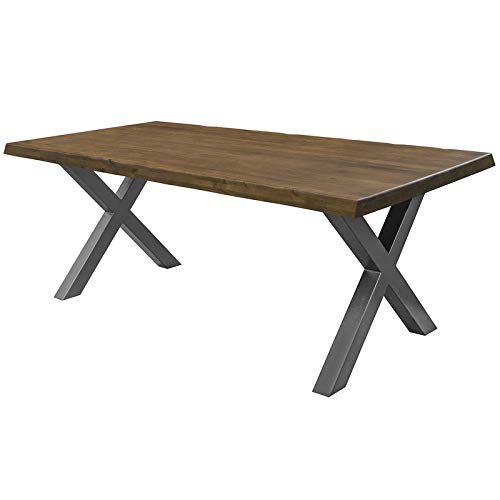 - ESTILO: Mesa de Roble macizo Color Nogal con patas X-forma robustas. Esta mesa de comedor cuenta con un diseño industrial y una estructura que la convertirá en la protagonista de tu hogar. Fabricada en Europa.