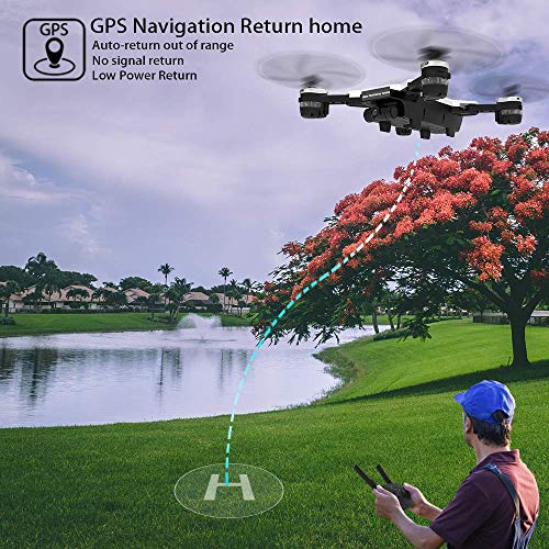 - Integrado GPS y GLONASS sistema de posicionamiento, puede locar preciosamente su cuadricoptero sin perderlo; Función incorporada (RTH) Volver a casa para volar más seguro, significa que el dron regresará automáticamente a casa justo cuando la batería está baja