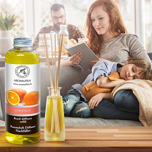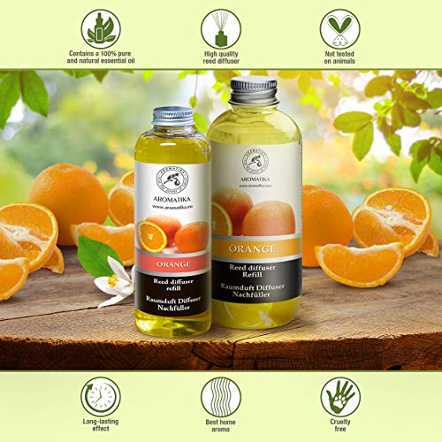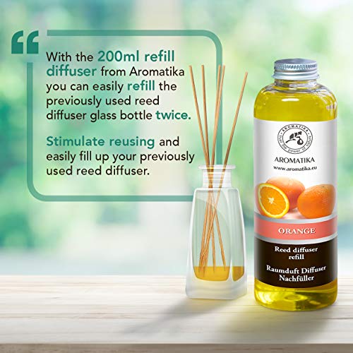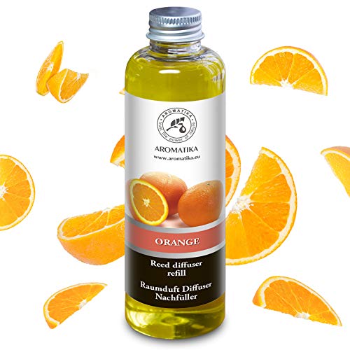 Recarga Difusor de Naranja 200ml - Aceite Esencial Puro Natural - Fragancias de Intensas y Duraderas - 0% Alcohol - para Cuartos - Cocinas - Baños - Hogares - Oficinas - Restaurantes - Aromaterapia
